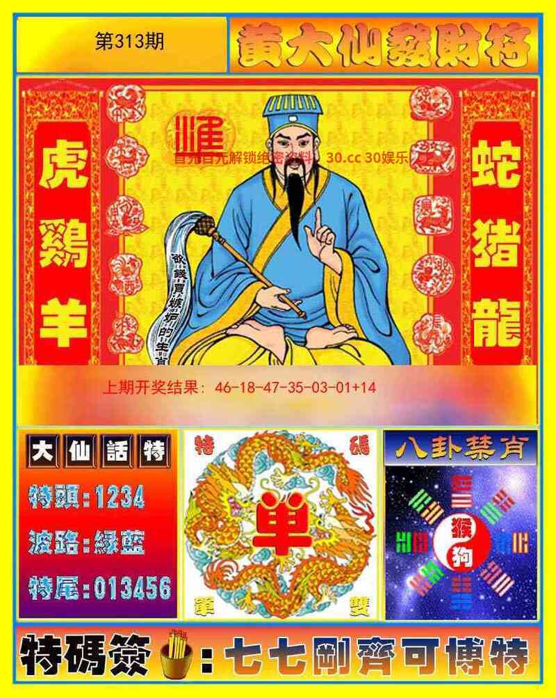 314期:密门仙机/心水特码信/黄大仙天书/波色生肖诗/生肖歇后语
